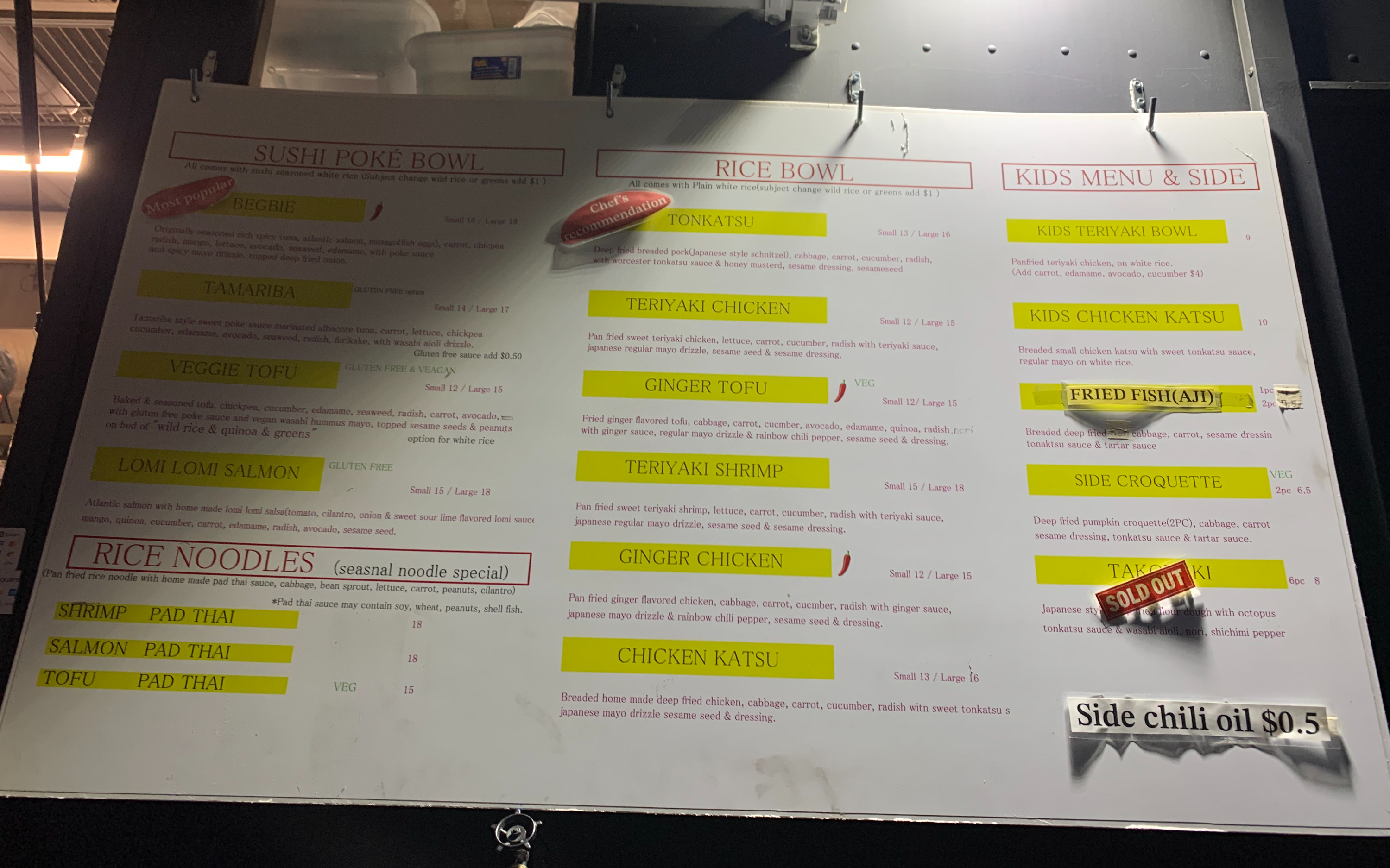 현재는 베그비 포케 스몰 사이즈는 없어졌고 라지 사이즈만 있는데 20달러, 돈카츠는 16.65달러네요.