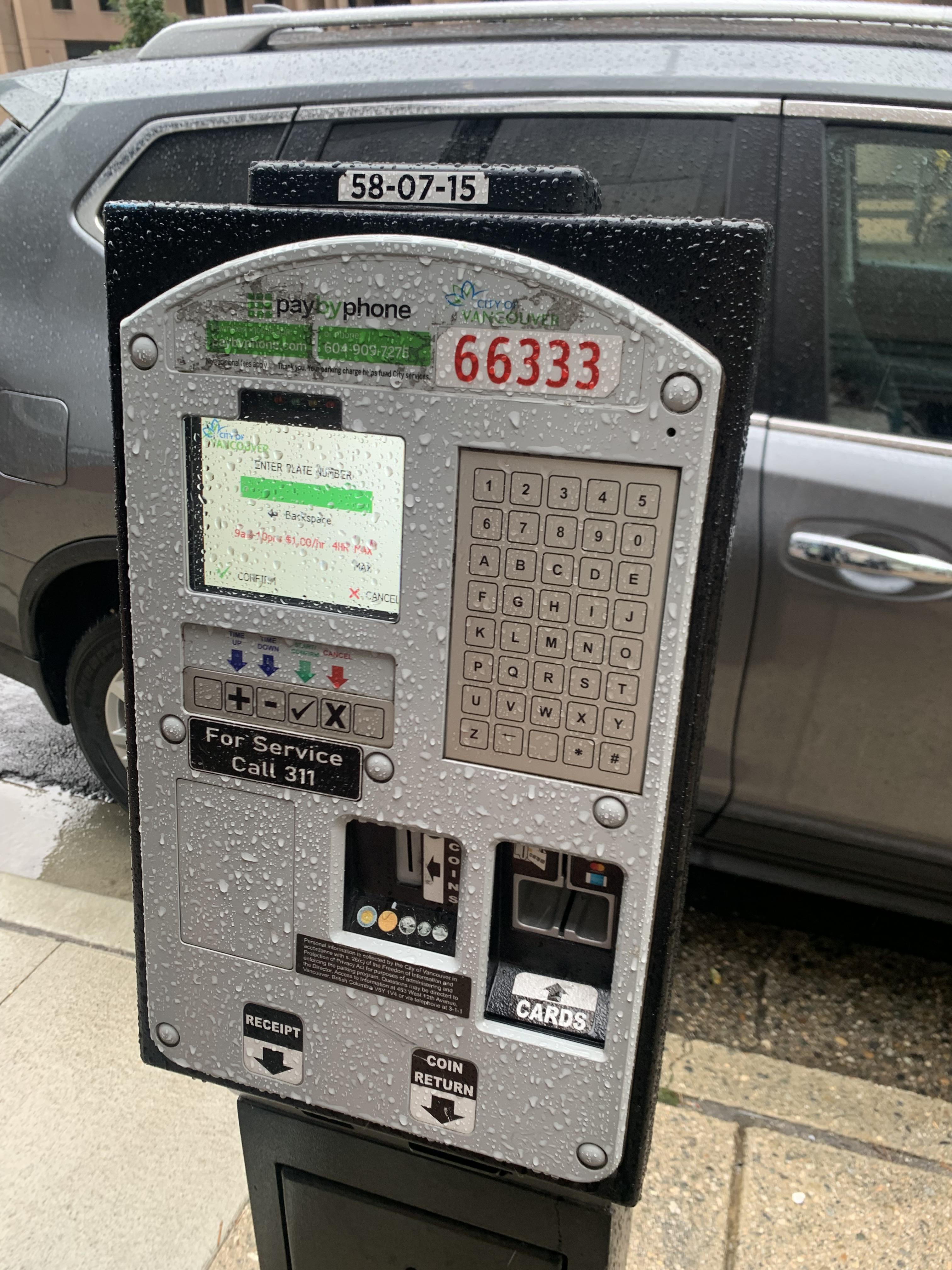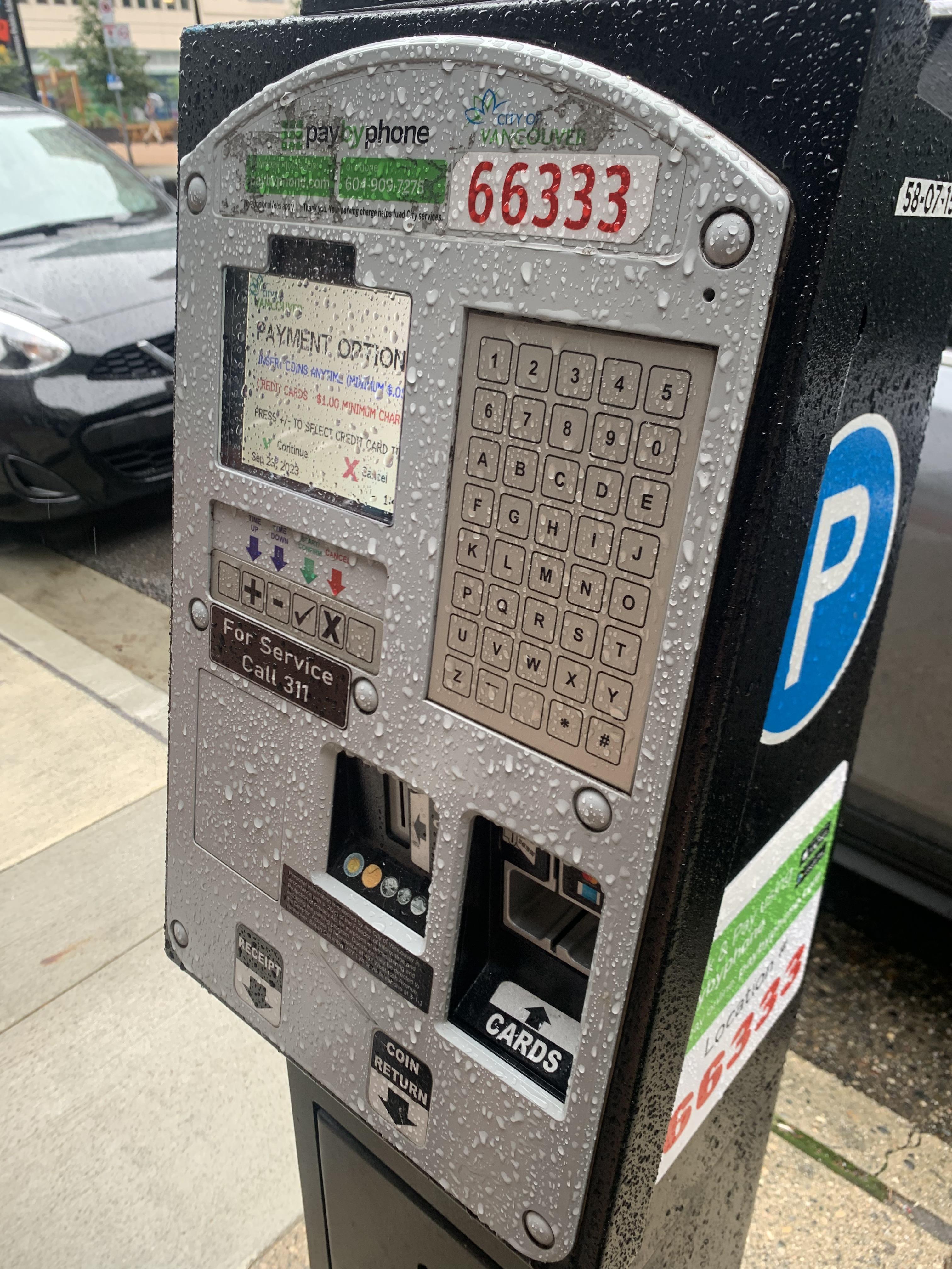 ① 밴쿠버와 워싱턴은 블록(구역)마다 주차요금이 다릅니다. 보통은 비슷하지만, 바로 옆 블록에 가거나 코너를 돌기만 해도 금액이 달라지는 경우가 제법 있어서 신기했습니다. 현지인일수록 주차 꿀팁 노하우가 늘겠구나 싶었어요(캐나다 전역이 이런지는 모르겠음). 각 도로의 주차요금기에 가보면 화면에 요금이 적혀 있습니다.